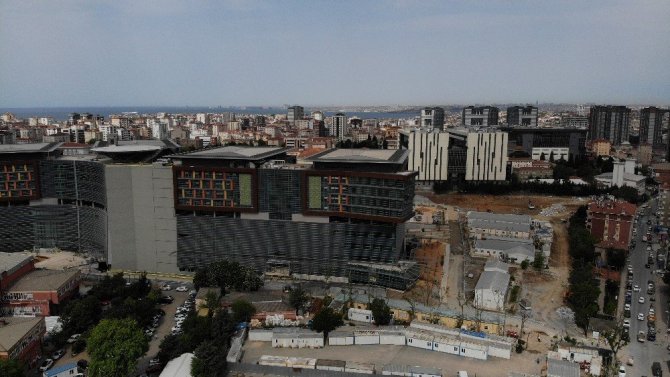 1. etabı tamamlanan Göztepe Şehir Hastanesi havadan görüntülendi
