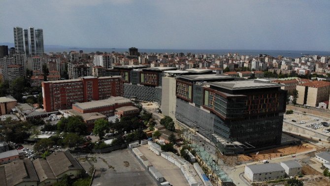 Cumhurbaşkanı Recep Tayyip Erdoğan’ın Eylül ayında hizmete girmesinin planlandığını duyurduğu Göztepe Şehir Hastanesinin inşaatının 1 etabı tamamlandı. 1’inci Etabı tamamlanan Göztepe Şehir Hastanesi havadan görüntülendi.