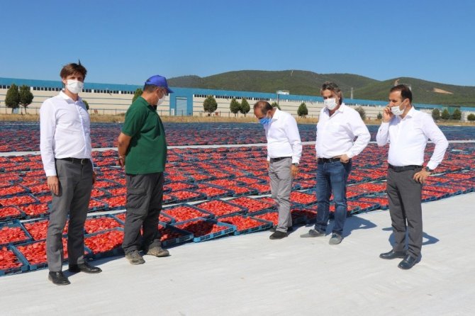Torbalı ilçesinde bölgenin en önemli ihracatçı firmalarından birisi ziyaret edilerek Dış Ticaret Müdürü Duygu Erdoğan ile sektöre ilişkin bilgi alışverişinde bulunuldu. Daha sonra ise Torbalı Ticaret Odası Başkanı Abdulvahap Olgun’un da katılımı ile kuru domates ihracatçısı İlker Abacı ziyaret edildi ve yakın zamanda başlayacak kuru domates ihracat sezonuna ilişkin üretimin tüm süreçleri yerinde görüldü.
