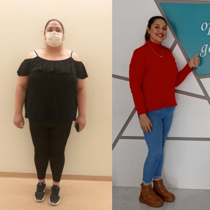 Hastaya laparoskopik olarak tüp mide ameliyatı gerçekleştirdiklerini söyleyen Genel Cerrahi Uzmanı Op. Dr. İhsan Oruk, "Hastamız bize morbid obezite dediğimiz aşırı kilo nedeniyle başvurmuştu. Uzun süre her türlü kilo verme yöntemini; diyet, egzersiz denedi. Aklına ne geliyorsa kim ne söylediyse denedi. Bir miktar kilo verip tekrar geri alıyordu. Bize başvurduğunda vücut kitle endeksi cerrahi sınırlarının çok üstündeydi. Ortalama 180 kiloydu. Yaşam kalitesi bozulmuş, harekette zorlanma, eklem ağrıları, uyku apneleri başlamış durumdaydı. Sağlıklı bir uyku düzeni yoktu. Hastamıza mide küçültme ameliyatı yapılmasına karar verdik ve laparoskopik olarak tüp mide ameliyatını gerçekleştirdik. 1 yıl sonraki kontrolde baktığımızda hasta 80 kilo vererek karşımıza geldi. Şu anda 170 kilodan 90 kilolara düşmüş durumda. Yaşam kalitesi değişti, artık depresif değil, kendi işini yapar hale geldi. Sağlıklı bir birey olmuş durumda" ifadelerini kullandı.