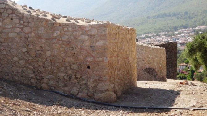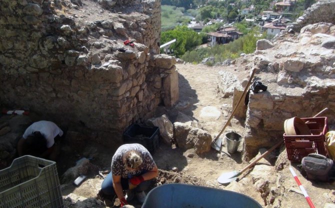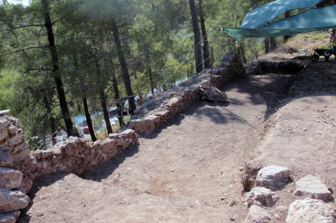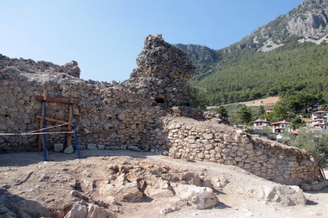 Muğla Valiliğinin destekleri ve Ula Belediyesi'nin katkılarıyla 10 ay önce kazı çalışmalarına başlanan Akyaka Kalesi'nde sur duvarları tamamen gün yüzüne çıktı.