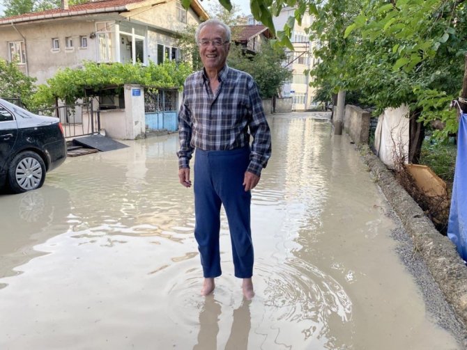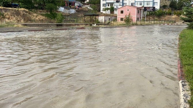 Karabük'te kısa süreli etkili olan yağış sonrası yollar dere yatağına döndü.