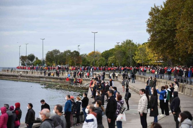 Kadıköy'de saat 9'u 5 geçe Fenerbahçe Orduevi ile Bostancı sahil arasında her yıl düzenlenen "Ata'ya Saygı Zinciri" pandemi önlemleri çerçevesinde bu yıl da sosyal mesafeli olarak düzenlenecek. El ele tutuşmadan, sosyal mesafe kurallarına uygun olarak planlanacak 6,5 kilometre uzunluğundaki zincire, yurttaşlar aralarında 2 metre mesafe bırakarak katılım sağlayacaklar.