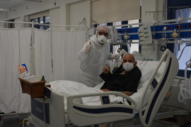 Pamukkale Üniversitesi Hastanesinde tedavi gören 100 yaşındaki korona virüs (Covid–19) hastası, yoğun bakımdan servise gönderildi.