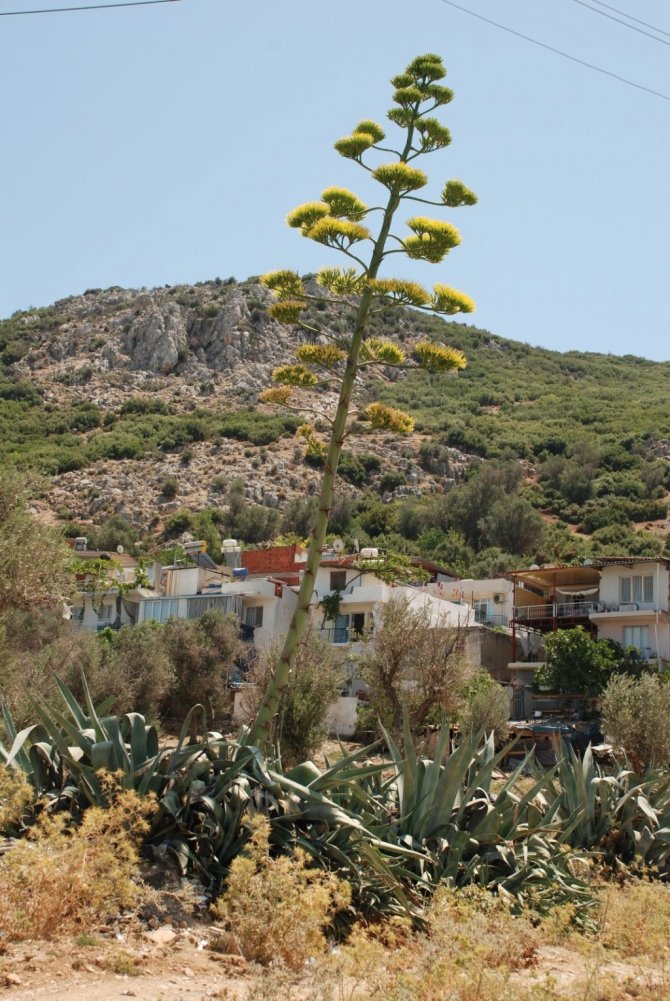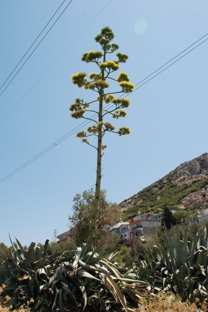 Ömründe sadece bir kez çiçek açan agave (sabır otu) bitkisi, İzmir'de çiçek açtı. Ana vatanı Orta ve Güney Amerika olan ve yaklaşık 100 yılda bir çiçek açan bitkinin UNESCO Dünya Mirası Listesi'nde yer aldığını belirten Ayfer Anuş isimli vatandaş, İzmir'deki agave bitkisinin de koruma altına alınması gerektiğini söyledi.