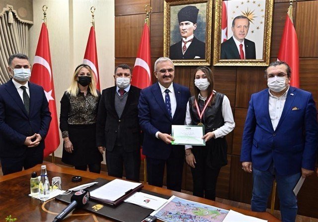 Konuşmaların ardından Vali Karaloğlu konuşma sonrasında, edebi ve görsel eserler alanlarında dereceye giren öğrencilere madalyalarını ve hediyelerini verdi.