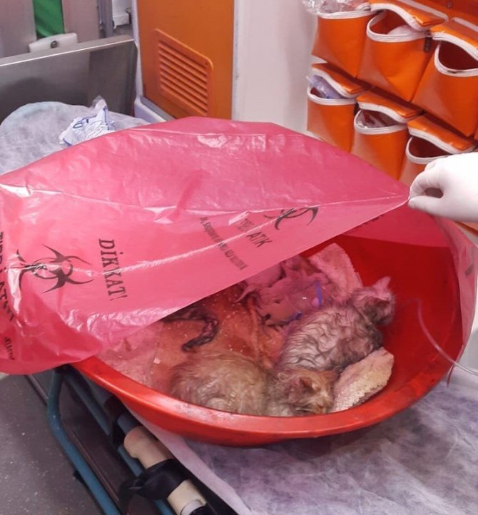 Hayvanlara yardım edebileceklerini düşünerek olay yerini terk etmeyen sağlık çalışanları, hummalı bir kurtarma operasyonunun içerisinde yer aldı. Dumandan etkilenen kedileri buldukları bir leğene koyan sağlıkçılar üstünü de poşetle örterek içeriye oksijen verdi. Yenidoğan küçük kedilere de masaj yaparak oksijen veren sağlıkçılar, bir canlıyı yaşamda tutmanın verdiği mutlulukla görev yerlerine geri döndü.