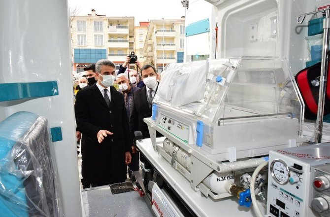 Teslimi yapılan ambulanslar hakkında Vali Baruş'a bilgiler veren Prof. Dr. Recep Bentli, "1 adet yeni doğan Ambulansı ile acil durumlarda yeni doğanların taşınmasında hayati öneme sahip mekanik ventilatör ve oksijen sistemleri içeren kuvöz ve yoğun bakımda ihtiyaç duyulan diğer tıbbi ekipmanlar bulunuyor" diye konuştu.