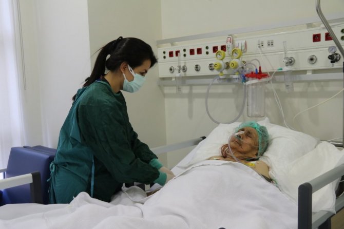 Korona virüse yakalandıktan bir süre sonra Eskişehir Şehir Hastanesi'nde tedavi altına alınan 116 yaşındaki Ayşe Karatay, yoğun bakım tedavisinin ardından virüsü yenerek servise gönderildi.