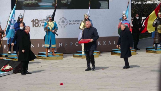 18 Mart Şehitleri Anma Günü ve Çanakkale Deniz Zaferi'nin 107'nci yıl dönümü törenlerinde, 129 yıllık Osmanlı sancağı Cumhurbaşkanı Recep Tayyip Erdoğan tarafından, Milli Savunma Bakanı Hulusi Akar'a teslim edildi.