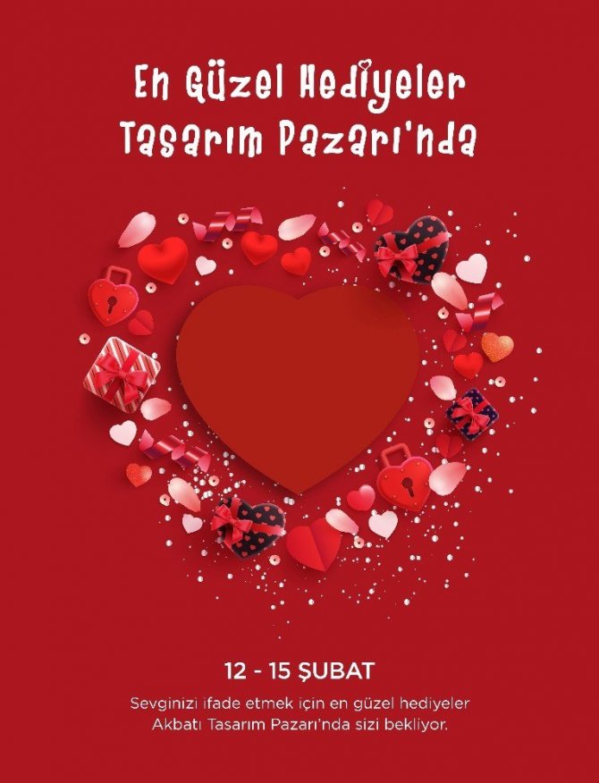 AVM, aynı zamanda kendini şımartmak ve sevdiklerini mutlu etmek isteyenleri 12-15 Şubat tarihleri arasında Akbatı Tasarım Pazarı’na davet ediyor. Tekstilden aksesuara, seramikten sürpriz tasarımlara kadar birçok alternatifin yer alacağı etkinlikte yediden yetmişe herkes aradığı hediyeyi bulabilecek. zemin katta gün boyu sürecek olan etkinlik, tüm misafirlerin katılımına açık olacak.