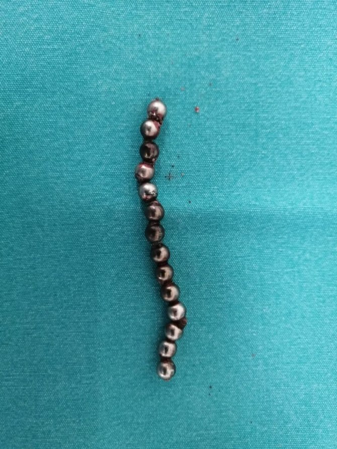 Batman'da karın ağrısıyla Eğitim ve Araştırma Hastanesinde ameliyata alınan 1 buçuk yaşındaki Ahmet Arif Ataş'ın yuttuğu mıknatıslı demir bilyelerin 8 yerden bağırsağını deldiği ortaya çıktı.