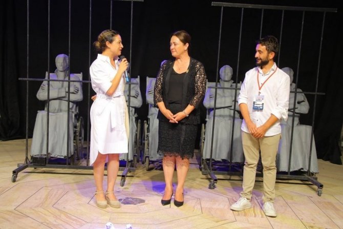 Amfi Tiyatro'da sahnelenen oyunun sonunda sanatçılara teşekkür eden Efes Selçuk Belediye Başkanı Filiz Ceritoğlu Sengel, "Sizi Efes Selçuk'ta görmek bizim için büyük bir onurdur. 14. Türkiye Tiyatro Buluşması daha önce karar verdiğimiz bir etkinlikti. Bu etkinliğe karar verdikten sonra çok acı bir tablo ile karşılaştık. Hepimizin gönlü o yanan ormanlarda, o yanan canlarda. Tüm sanatçılarımız ve katılımcılarımı burada oldukları süre boyunca kalplerinde o sızıyı yaşadılar. Tiyatro toplumun yansıması ve geleceğe doğru atılan bir adımdır. Biz burada güncel olayları konuşarak, yaşadığımız acıyı paylaşarak, toplumun yansımasıyla bu işe devam ettik. Sanatı eğlence değil, toplumu belli bir yere getirmek için atılan bir adım olarak görüyoruz. Aksi bir durumun düşünülmesi mümkün değil" dedi.