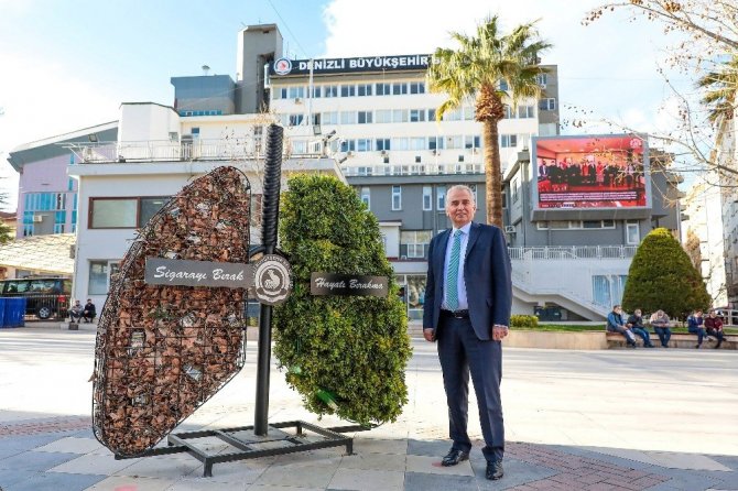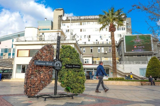 Denizli Büyükşehir Belediyesi Park ve Bahçeler Dairesi Başkanlığı, 9 Şubat Dünya Sigarayı Bırakma Günü'ne özel bir çalışma gerçekleştirdi. Bir tarafı kurumuş yaprak ve boş sigara paketleri diğer tarafı ise yeşil bitkilerden oluşan bir akciğer figürü hazırlayan Denizli Büyükşehir Belediyesi, üzerinde "Sigarayı bırak, hayatı bırakma" yazan dev akciğer maketini 15 Temmuz Delikliçınar Şehitler Meydanı'na yerleştirdi. Sigara içen kişinin akciğeri kurumuş yapraklara sağlıklı kişinin akciğeri ise yeşil bitliklere benzetilirken, çarpıcı çalışma vatandaşlar tarafından ilgiyle izlendi. Denizli Büyükşehir Belediye Başkanı Osman Zolan da vatandaşlarla birlikte dev akciğer maketini inceledi. Sigaranın zararlarının, içen ve içmeyen herkes tarafından bilindiğini ifade eden Başkan Zolan, "Dünyada sigara sağlıklıdır diyen bir kişi yok" dedi. Sigaranın zararlarının farklı şekillerde anlatıldığını, sigara paketleri üzerine şekiller konduğunu ve birçok yasal düzenlemeler yapıldığını anlatan Başkan Zolan, 9 Şubat Dünya Sigarayı Bırakma Günü'nde Park ve Bahçeler Dairesinin bu konuda daha farklı bir çalışma gerçekleştirdiğini belirtti.