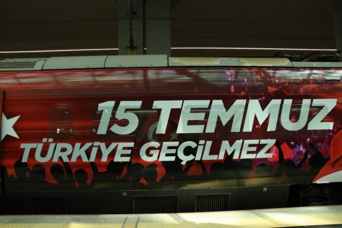 Cumhurbaşkanlığı İletişim Başkanlığı ve Türkiye Cumhuriyeti Devlet Demiryolları (TCDD) iş birliğinde, 15 Temmuz Demokrasi ve Milli Birlik Günü kapsamında 15 Temmuz görseli ile giydirilmiş yüksek hızlı tren (YHT) Ankara YHT Garı'ndan İstanbul'a uğurlandı.