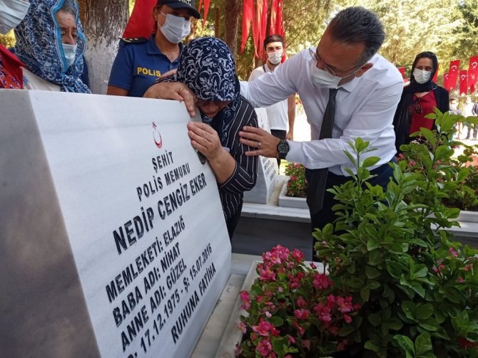 15 Temmuz Şehitlerini Anma Demokrasi ve Milli Birlik Günü kapsamında Aydın'da şehitlik ziyaretleri gerçekleştirildi. Tellidede Mezarlığı'nda başlayan programın ardından Kemer Mezarlığı'ndaki şehitlik ziyareti gerçekleştirildi. Aydın Valisi Hüseyin Aksoy ve beraberindeki protokol, 15 Temmuz hain darbe girişimi sırasında Marmaris'te bulunan Cumhurbaşkanı Recep Tayyip Erdoğan'ı korumak için yola çıkan ve teröristlerin açtığı ateş sonucu şehit düşen Nedip Cengiz Eker'in de kabrini ziyaret etti. Duaların okunup, şehidin kabrine çiçek bırakılırken, şehidin annesi Güzel Eker'in oğlunun mezarına sarılarak yaktığı ağıtlar ise yürekleri dağladı. Oğlunun mezarına sarılan şehit annesi Eker'i Vali Aksoy teselli etmeye çalıştı.