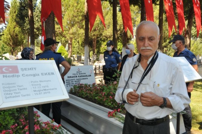 15 Temmuz hain darbe girişiminde Marmaris'te teröristlerin açtığı ateş sonucu şehit düşen polis memuru Nedip Cengiz Eker'in annesi Güzel Eker'in, oğlunun mezarı başındaki ağıtları yürekleri dağladı.