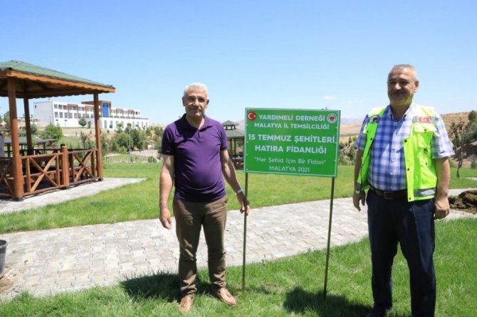 Malatya'nın Battalgazi Belediyesi ve Yardımeli Derneği tarafından 15 Temmuz şehitleri anısına İspendere Şifalı İçmeleri'nde oluşturulan "15 Temmuz Şehitleri Hatıra Fidanlığı'nda 251 adet fidan toprakla buluşturuldu.