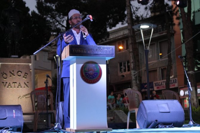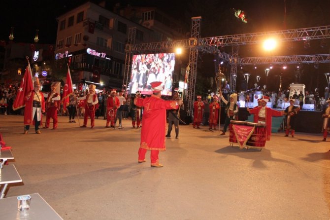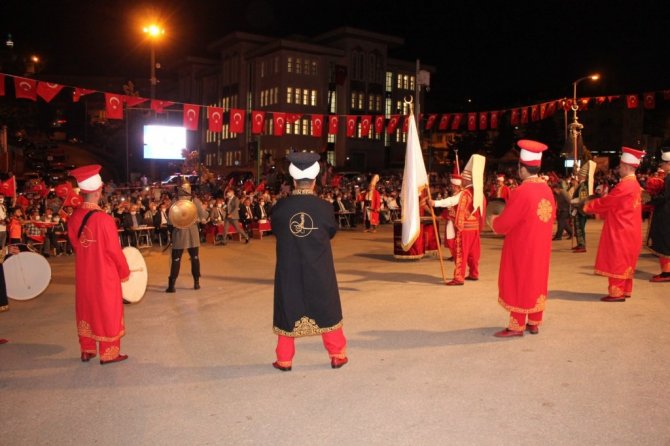 Cumhurbaşkanı Recep Tayyip Erdoğan'ın 15 Temmuz mesajının ardından mehteran gösterileri yapıldı. Otuz Kuş şiirinin okunmasıyla devam eden programda kahramanlık türküleri söylendi. Din görevlilerinin ilahileri ile sona eren programın sonunda camilerden sela sesleri yükseldi. Programın ardından ilçenin Cumhuriyet Meydanında gece boyunca demokrasi nöbeti tutuldu.