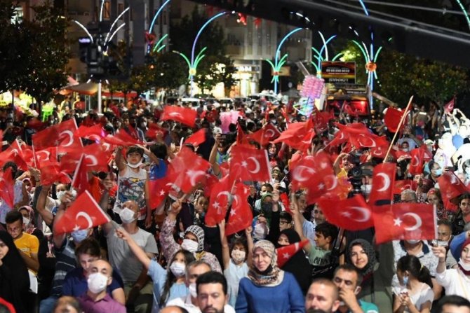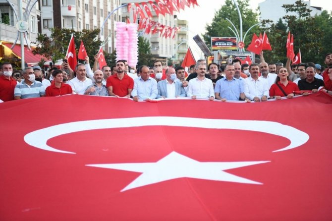 Çayırova'da 15 Temmuz Demokrasi ve Milli Birlik Günü anma programında bayrağını alıp caddelere inen vatandaşlar, meydanları kırmızı beyaza bürüdü.