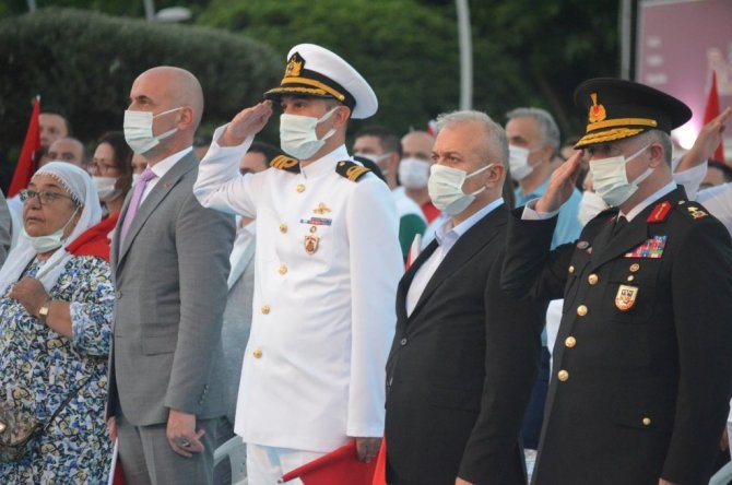 Darbecilerle çıkan çatışmada şehit olan polis memurlarından Nedip Cengiz Eker'in annesi Bahar Güzel Eker ve babası Nihat Eker programa katıldı. Aksaz Deniz Üs Komutanlığı'na bağlı askeri bando eşliğinde Mustafa Kemal Atatürk ve şehitler adına bir dakika saygı duruşu ve İstiklal Marşı okundu. Kuran-ı Kerim tilaveti ve 15 Temmuz şiiri okundu, dua edildi. 15 Temmuz gününe dair sinevizyon gösterisi izlendi.