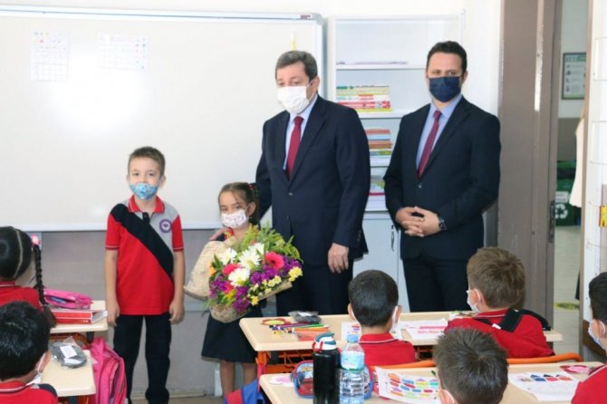 Minik öğrencilerin çiçeklerle karşıladığı Vali Orhan Tavlı ve İl Milli Eğitim Müdürü Emre Çay, birinci sınıfları ve anasınıfını ziyaret ederek öğrencilerle bir araya geldi.