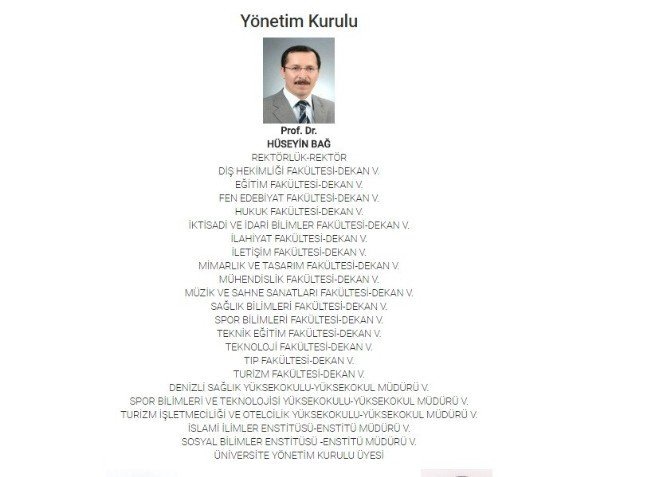 YÖK tarafından Pamukkale Üniversitesi’ne vekaleten atanan Prof. Dr. Hüseyin Bağ, 16 fakülteye dekan, 3 yüksekokul ile 2 enstitüye de müdür vekilliği yapıyor.