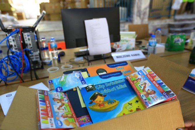 Türkiye'den ihtiyaca göre gelen malzemelerin yanı sıra çok sayıda hediyelik eşyalarda yardım noktasına gönderildi. Konya'dan gönderilen ve üzerinde gönderenin isminin yazmadığı bir pakette ise emzik, oyuncak, boyama kitabı, pastel boya çıkması malzeme kabuldeki personelleri duygulandırdı.