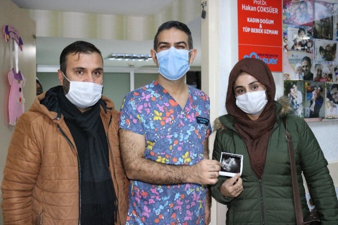 Mardin'de yaşayan 17 yıllık evli Gurbet Kılıç, doğal yoldan çocuk sahibi olmayınca farklı illerde birçok kliniğe başvurdu. Buralarda 3 defa tüp bebek başarısızlığı ve 2 defa da aşılama tedavileriyle olumsuz sonuçlar alan Kılıç, en son Diyarbakır'da Kadın Doğum ve Tüp Bebek Uzmanı Prof. Dr. Hakan Çoksüer tarafından muayene edildi. Yapılan muayene sonucu Prof. Dr. Çoksüer ve ekibi çifte, akupunktur ve fitoterapi tedavileri uyguladı. Tedavileri başarılı olan Kılıç çiftinin çocuk hasreti, 17 yıl sonra gebelik kesesinin görülmesiyle son buldu.
