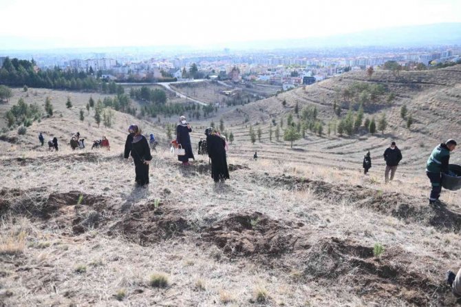 Çorum Belediyesi Kadın Kültür ve Sanat Merkezleri kursiyeri 180 kadın, 11 Kasım Milli Ağaçlandırma Seferberlik Günü'nde 180 fidanı toprakla buluşturdu.