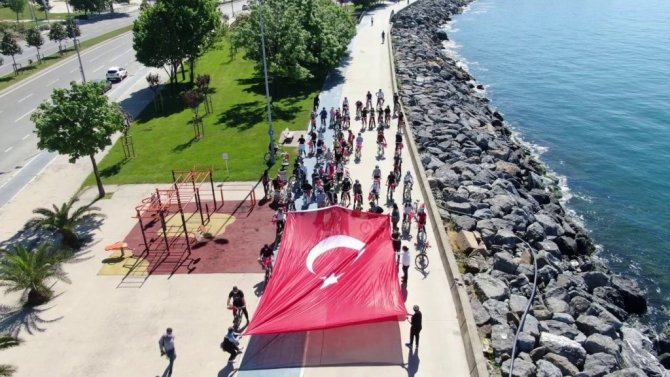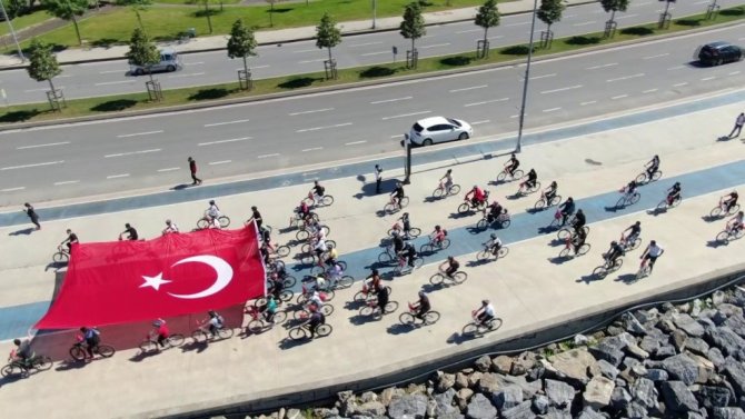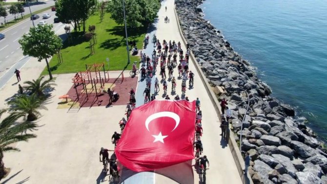 19 Mayıs’ta dev Türk bayraklı bisiklet korteji havadan görüntülendi