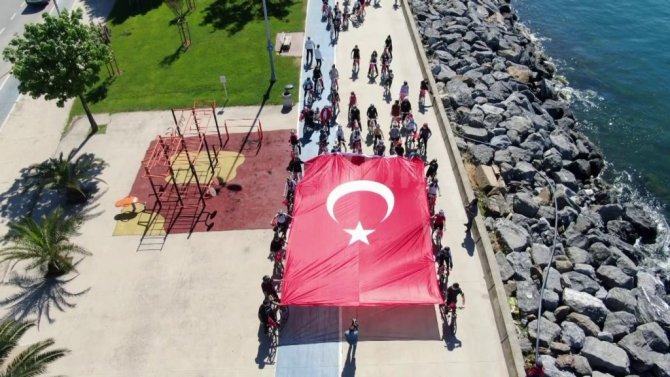19 Mayıs Gençlik ve Spor Bayramı dolayısıyla Pendik'te dev Türk bayraklı bisiklet turu gerçekleştirildi.