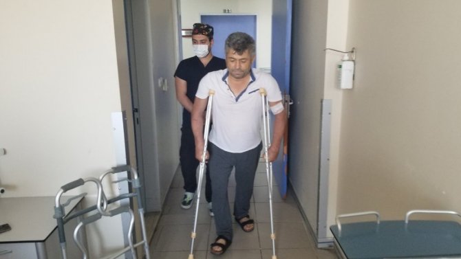 Ameliyatın ardından yürüme çalışmalarına başlayan ve koltuk değnekleriyle ilk adımlarını atan Feyyaz Delice duygularını şöyle dile getirdi: