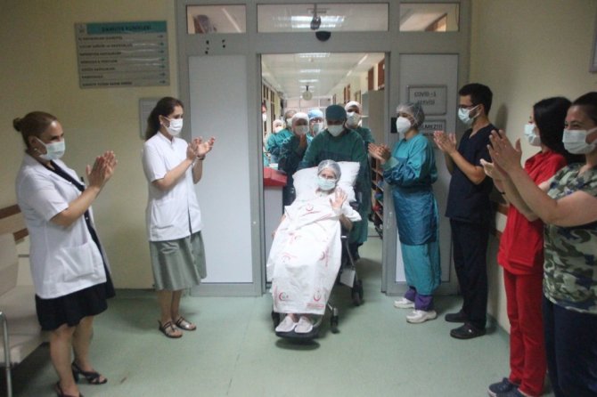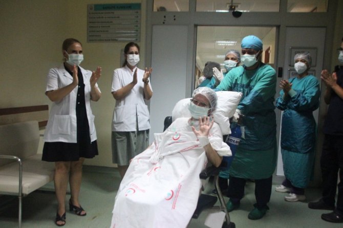 Yaklaşık 75 gün sonra hastaneden taburcu olan hastayı, kovid servisi çıkışında ailesi ve sağlık çalışanları alkışlarla karşıladı. Alkışlarla servisten çıkan Zehra Akar'ın oldukça mutlu olduğu görüldü.