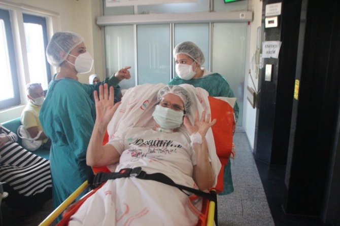 Muğla'nın Bodrum ilçesinde korona virüs nedeniyle yaklaşık 2 ay yoğun bakımda kalan ve doğum gününde uyanan 60 yaşındaki Zehra Akar, hastaneye ilk girişinden 2,5 ay sonra alkışlarla taburcu edildi.