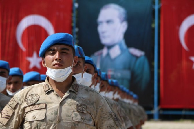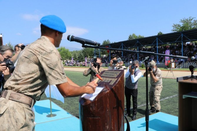 Saygı duruşu ve İstiklal Marşı'nın okunmasıyla başlayan törende, eğitimde başarılı olan askerlere İçişleri Bakan Yardımcısı Ersoy ve Jandarma Genel Komutanı Orgeneral Arif Çetin tarafından plaketleri verildi.
