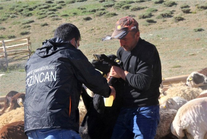 Erzincan'ın yüksek rakımlı yaylarında Kırım Kongo Kanamalı Ateşi (KKKA) vakalarının artması üzerine hayvanlar kenelere karşı ilaçlanıyor.