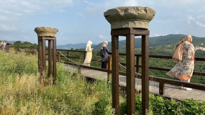 Kentin en gözde beldesi olan Filyos'a tepeden hakim olan antik kent, adeta beldenin balkonu haline geldi. Hafta sonları antik kentin yolunu tutan ziyaretçiler, pandemi dolayısıyla maske ve mesafe kurallarına uyarak ziyaretlerini gerçekleştiriyor. Girişte önce kentin tarihi hakkında bilgi edinen ziyaretçiler, kazılardan elde edilen eserleri inceleme fırsatını yaşıyor. Kazıların ortasından geçen ahşap yoldan ilerleyen ziyaretçiler, teras tabir edilen bölüme gelerek burada hem anı ölümsüzleştiriyor hem de turistik beldeyi tepeden izliyor.