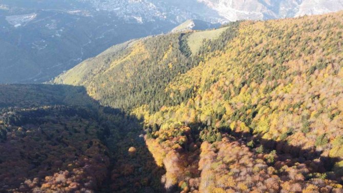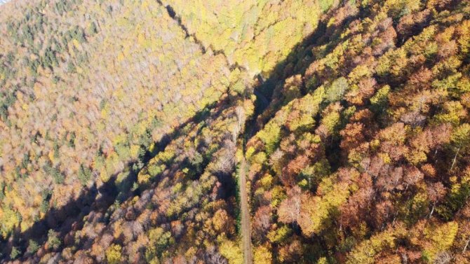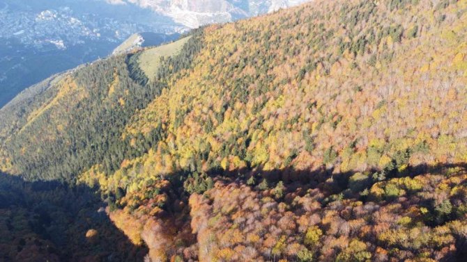 Sonbahar mevsimiyle birlikte yurdun, dört bir yanında eşsiz manzaralar ortaya çıkmaya başladı. Yüzölçümünün yüzde 57'sinin ormanla kaplı bulunan Artvin'de yeşilin yanı sıra sarı, turuncu ve kırmızının tonlarını sergileyen ağaçlar görenleri kendisine hayran bırakıyor. Şehrin hemen üzerinde, 18 kilometrelik mesafede bulunan 2 bin 80 rakımlı Genya dağı rengarenk oldu.