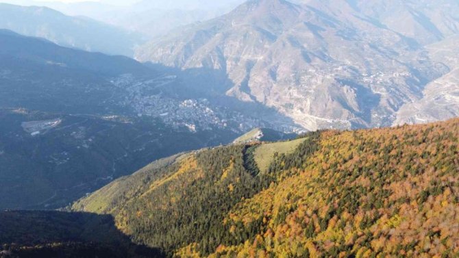 Atabarı kayak merkezi ve Kafkasör yaylasının eşlik ettiği renk cümbüşünde, havadan görüntülendi.
