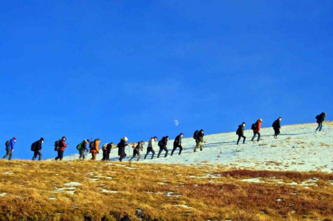 Gümüşhane Dağcılık ve Doğa Sporları Kulübü (GÜDAK) üyesi sporcular yaz aylarında eşsiz manzaralar sunan, sisi, bulutları ve günbatımı ile ünlü Kızılali yaylasına ilk kez kış yürüyüşü düzenledi. Güzel havanın da etkisiyle sporcular 2 bin 25 metre rakımlı tepeden Karadeniz'i görme fırsatı buldu.