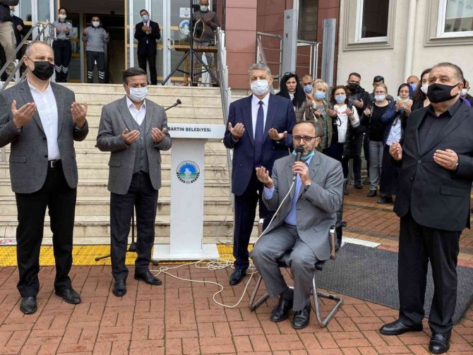 Başkan Akın'ın konuşmasının ardından kazada hayatını kaybeden isimler için Kur'an-ı Kerim okundu. Yapılan duaların ardından Başkan Akın engelli asansörünü kullanarak makam odasına çıkarak göreve başladı.