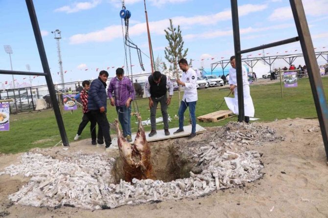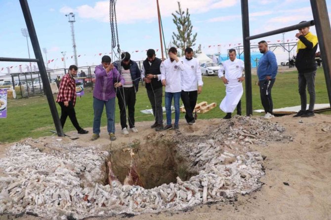 Afyonkarahisar'da 3 yıl önce ilki düzenlenen Gastro Afyon Turizm ve Lezzet Festivali'nde aşçıların ateşte çevirerek pişirirken yaktığı dana, bu seneki festivalde ise dikey şekilde pişirilmek istenirken çukura düştü.