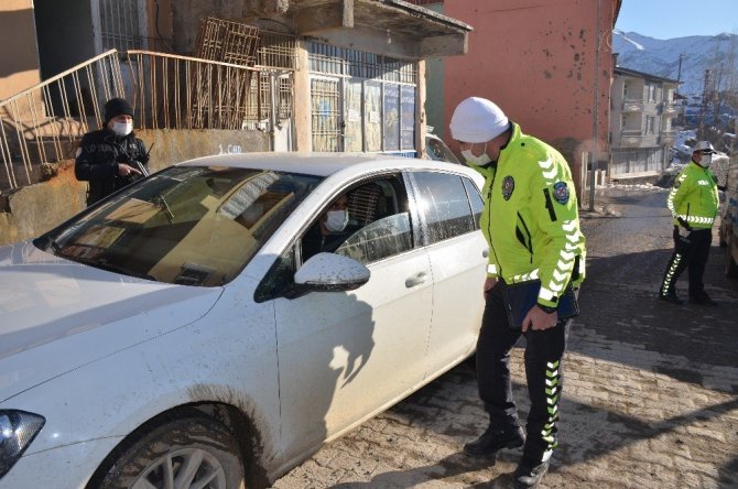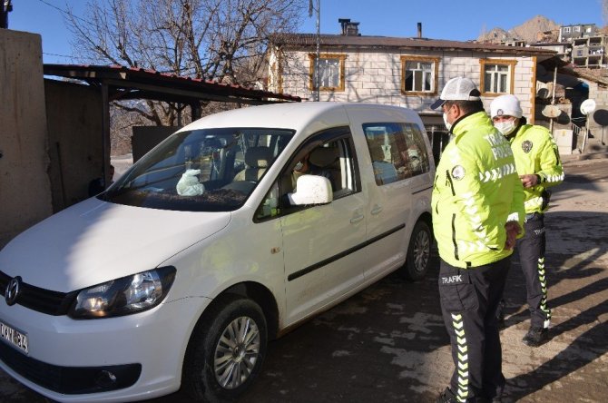 Trafik polisleri kent girişinde vatandaşlara maske uyarısında bulunurken HES kodu sorgulaması yapıyor.