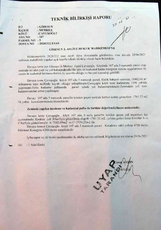 Giresun merkeze bağlı Çavuşoğlu köyünde 30 civarında köye ulaşım sağlayan grup yolu davalık oldu. Babalarının tapulu fındık bahçesi içerisinden 20 yıl önce yapılan grup yolunun kadastroda olmadığını öğrenen varisler tarafından açılan davada mahkeme kamulaştırma bedelinin ödenmesine karar verdi. Ancak yolu yapan Giresun İl Özel İdaresi'nin karara itiraz ederken, arazi varisleri mahkemenin sonuçlanmasının ardından kamulaştırma bedelinin ödenmemesi halinde yolun ulaşıma kapatacaklarını kaydetti.