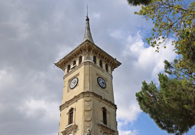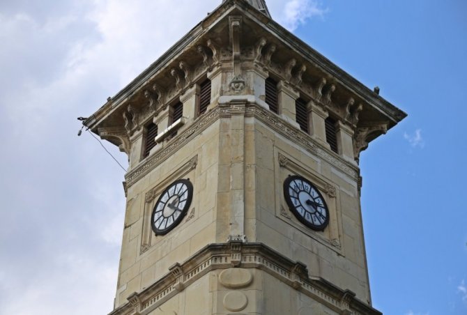 Saat kulesinin kara planla inşa edildiğini, 4 katlı olduğunu kaydeden Cömert, "İlk katının üç tarafı çeşme ve sebillerle çevrilidir. Sebillerin hemen üstünde mermer kabartmalı ay yıldız ve çelenk süslemelerini görürüz. Bunlar sanat tarihi açısından da önem taşımaktadır. İkinci katında bulunan mimari ögelere baktığımızda sütunlar ve bezemeler dikkat çekmektedir. Üçüncü katında da pencereler var. Aynı zamanda burada saat kulesine çıkış noktasındaki merdivenler mevcuttur. Dördüncü katında ise 80 santim çapında saat kadranını görürüz. Bu saat kadranı inşa edildiği dönemden bu yana orijinalliğini koruyan Türkiye'deki ender saat kadranlarından biridir" şeklinde konuştu.
