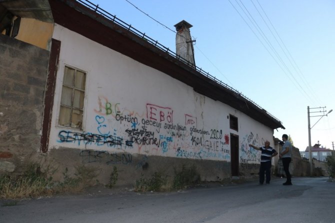 Sivas'ta yaklaşık 200 yıldır ayakta duran "Ali Şeker Evi" zamana meydan okuyor. Konağın bir duvarının ise adeta yazı tahtasına dönmesi dikkat çekiyor.