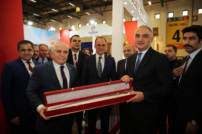 Fuarın açılışını gerçekleştiren Kültür ve Turizm Bakanı Mehmet Nuri Ersoy ve beraberindekiler Denizli standını ziyaret etti. Denizli Büyükşehir Belediyesi Genel Sekreter Yardımcısı Mustafa Gökoğlan’ın karşıladığı Bakan Ersoy, Denizli Büyükşehir Belediyesi ve turizm sektörü temsilcilerinin birlik ve beraberliğini takdir ederek, kolaylıklar diledi. Ziyaretin ardından Gökoğlan, Bakan Ersoy’a günün hatırasına Yatağan Palası hediye etti.