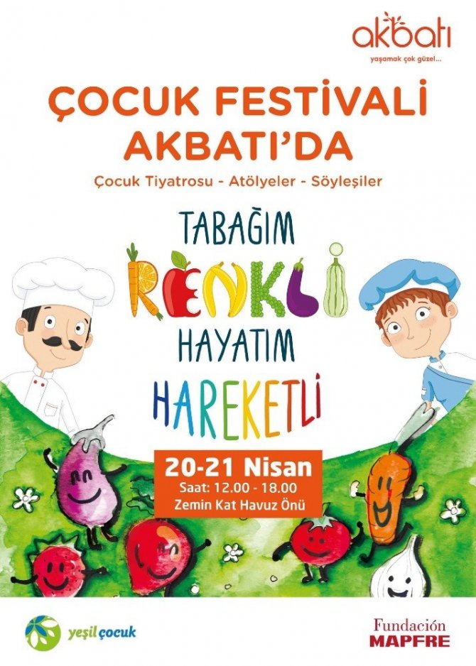20 Nisan Cumartesi günü başlayacak etkinliklerde ‘Rengarenk Kurabiyeler Yapıyoruz & Origami ile Tabağımızı Tasarlıyoruz’ ile ‘Çocuk Yogası” atölyeleri gerçekleşecek. Ayrıca ‘Tabağım Renkli Hayatım Hareketli’ çocuk tiyatrosunun Mapfre Sigorta katkıları ile sahneleneceği festivalde, ebeveynler için Tamamlayıcı Tıp Uzmanı Doktor Didem Gülmez ile ‘Sağlıklı Yaşam için Renkli Besinler ve Tarifler’ söyleşisi de yer alacak.
