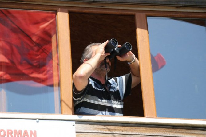 Bolu'da, orman yangınlarına karşı 13 farklı noktada oluşturulan yangın gözetleme kulelerinde çalışan işçiler olası yangınlara karşı teyakkuz halinde bekliyorlar. Yüzde 65'ormanlarla kaplı olan kentte hava sıcaklıklarının artması ve nemin düşmesiyle birlikte artan yangın riskine karşı tedbirler de artırıldı. Aladağlar mevkiinde bulunan İkisivri Gözetleme Kulesi'nde 24 yıldır ormanları gözetleyen Fahrettin Kurul, dürbünüyle bir an olsun gözünü ormanlardan ayırmıyor.